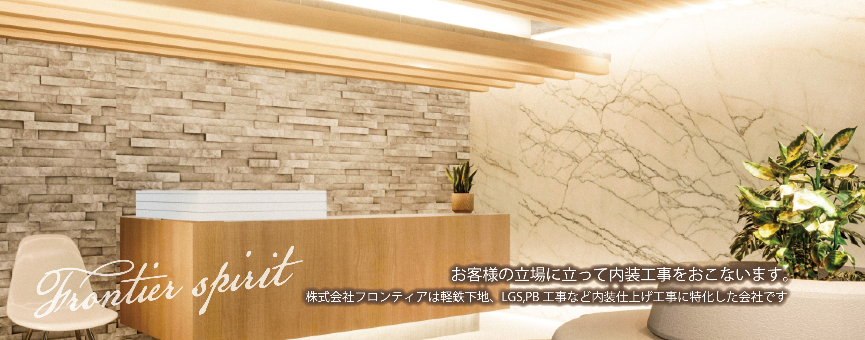 愛知県大治町を拠点に内装仕上げ業を手掛ける株式会社frontierは、お客様の立場にたった仕事を心がけています。お客様が言葉に表さない細かなニーズや想いに目を向け、耳を傾けて、ご納得の頂ける仕上がりを目指してまいります。ご要望をお聞かせください。